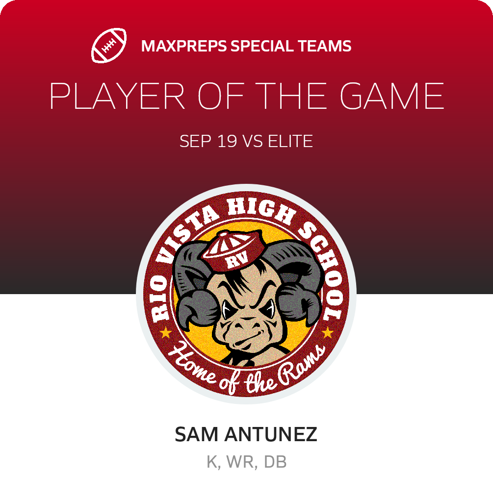 September 19, 2025: Rio Vista, CA 94571 In Friday's league match, the host Rio Vista Rams football squad scored a decisive 76-7 victory over the Elite Eagles.