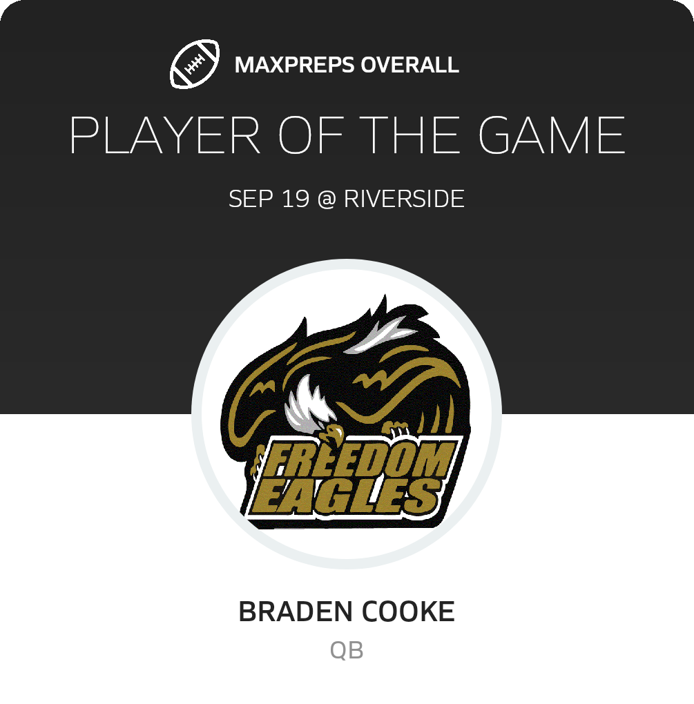 The Eagles now hold a 3-0 record. They take the field next when they travel to Dominion for a non-league test on Friday, September 26. Freedom will play a Titans team coming off a 56-6 league loss to Loudoun Valley (Purcellville, VA). The Titans record now stands at 0-4.