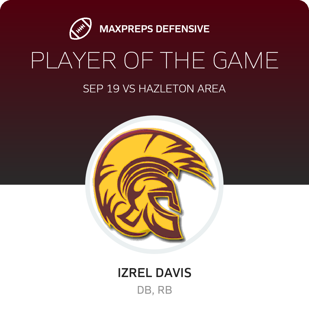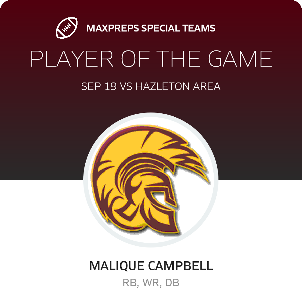 Congratulations to #6 Malique Campbell (overall, offensive and special teams) and #15 Izrel Davis (defensive) for being selected the Wyoming Valley West Football Players of the Game.
