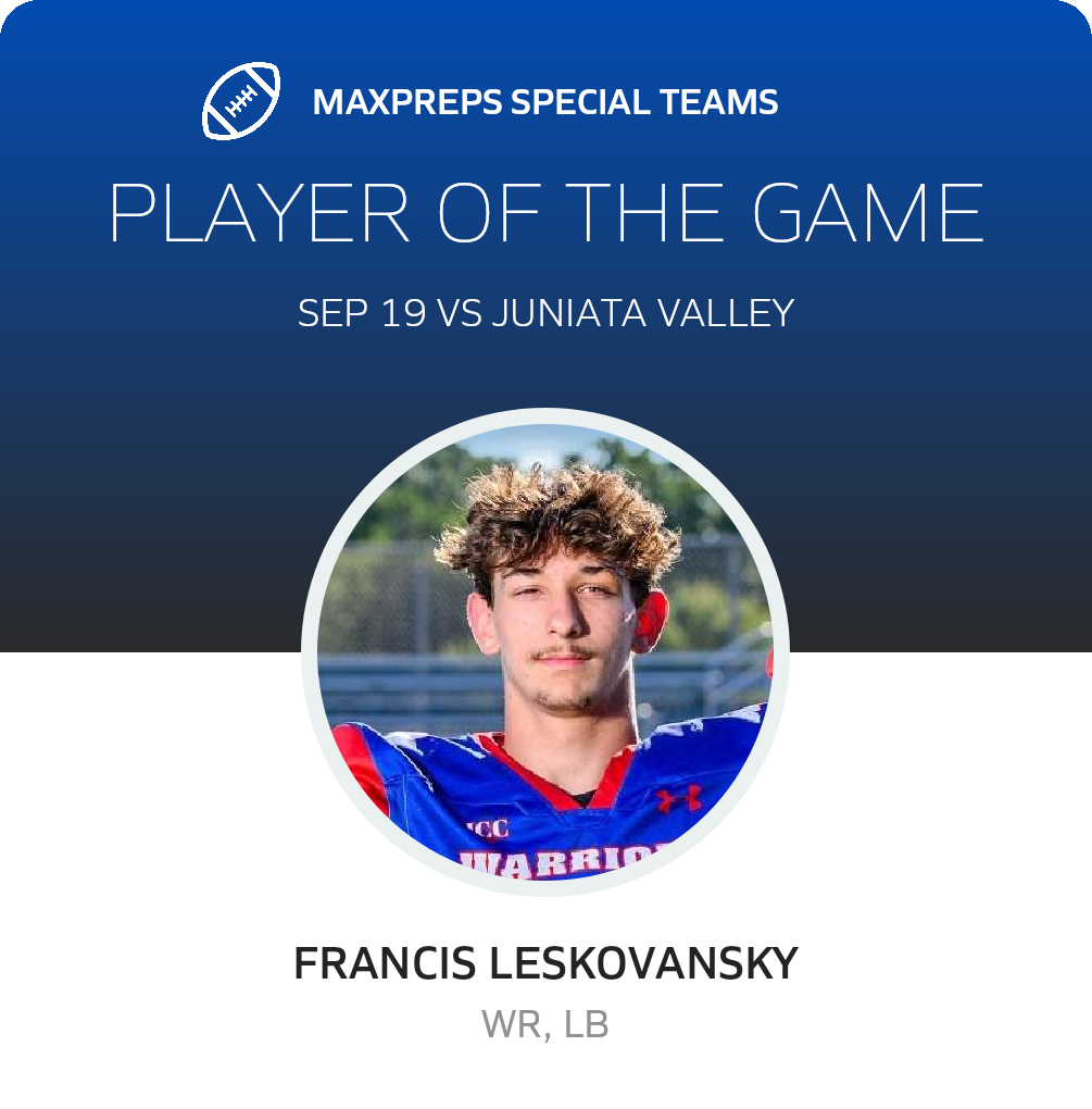 September 19, 2025: Morrisdale, PA 16858 The West Branch Warriors football team (Morrisdale, PA), was crushed 55-14 in Friday's league bout with the visiting Juniata Valley Hornets (Alexandria, PA)