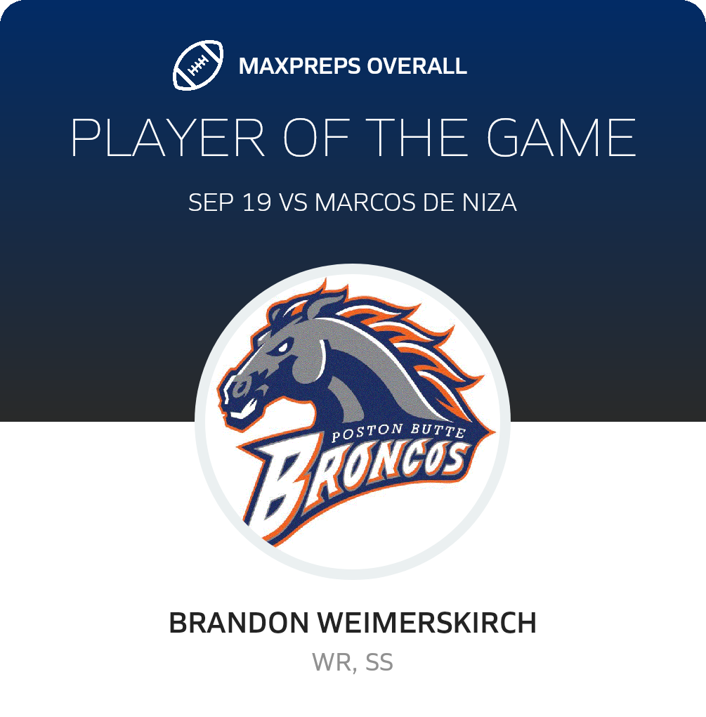 Coming up next, the Broncos confront the Peoria Panthers (Peoria, AZ) in a non-league contest, on Friday, September 26. Poston Butte will attempt to advance on its 0-4 season record. The Panthers go into the battle with a 1-3 record after their 48-14 non-league loss to Cactus (Glendale, AZ).