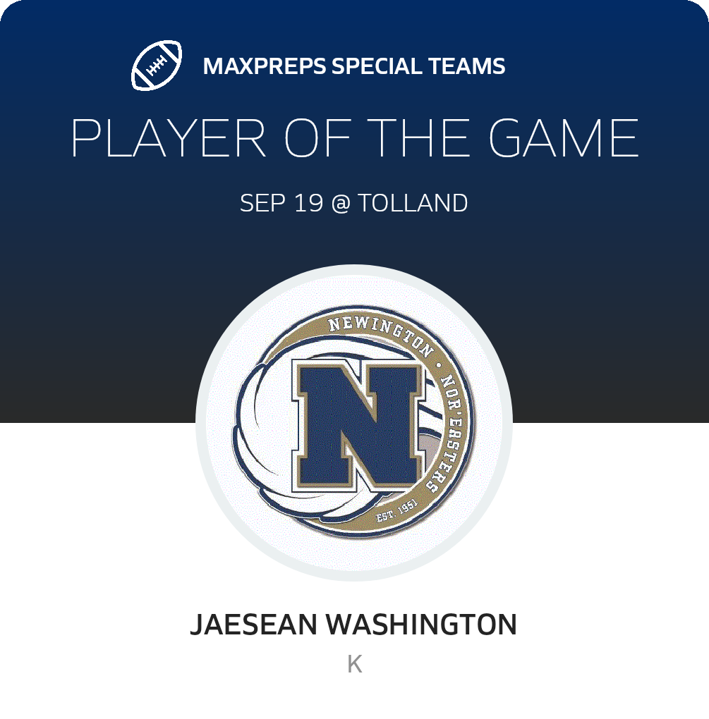 In their next game, the Nor'easters play the Enfield Eagles (Enfield, CT) in a non-league challenge, on Friday, September 26. Newington will attempt to improve on its 2-0 season record. The Eagles go into the challenge with a 2-0 record after their 38-18 league win over Simsbury (Simsbury, CT).