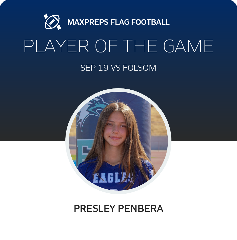 Congratulations to #2 Presley Penbera for being selected the Vista del Lago Girls JV Flag Football Player of the Game.