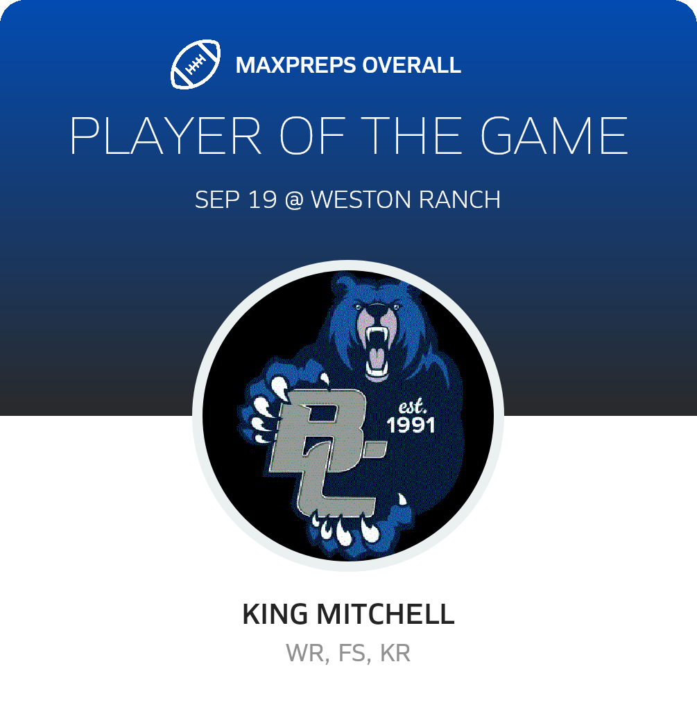 September 19, 2025: Stockton, CA 95206 The Bear Creek Bruins (Stockton, CA) football triumphed over the host Weston Ranch Cougars (Stockton, CA), 44-0 in Friday's league game.