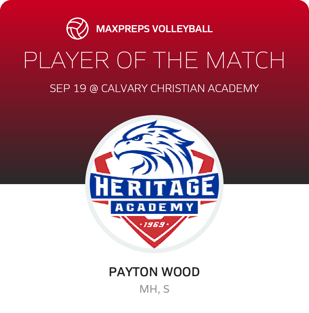 With the win, Heritage Academy improves its record to 10-2 on the season. The Eagles travel to Carroll Christian (Westminster, MD) to face the in a non-league test on Monday, September 22. The go into the test with a record of 2-1.