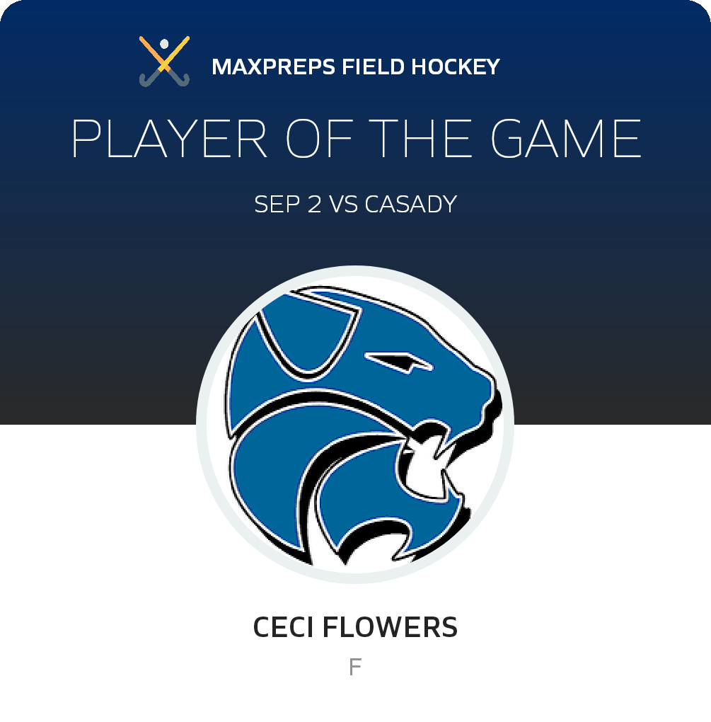 Congratulations to #20 Ceci Flowers for being selected the Kentucky Country Day Field Hockey Player of the Game.
