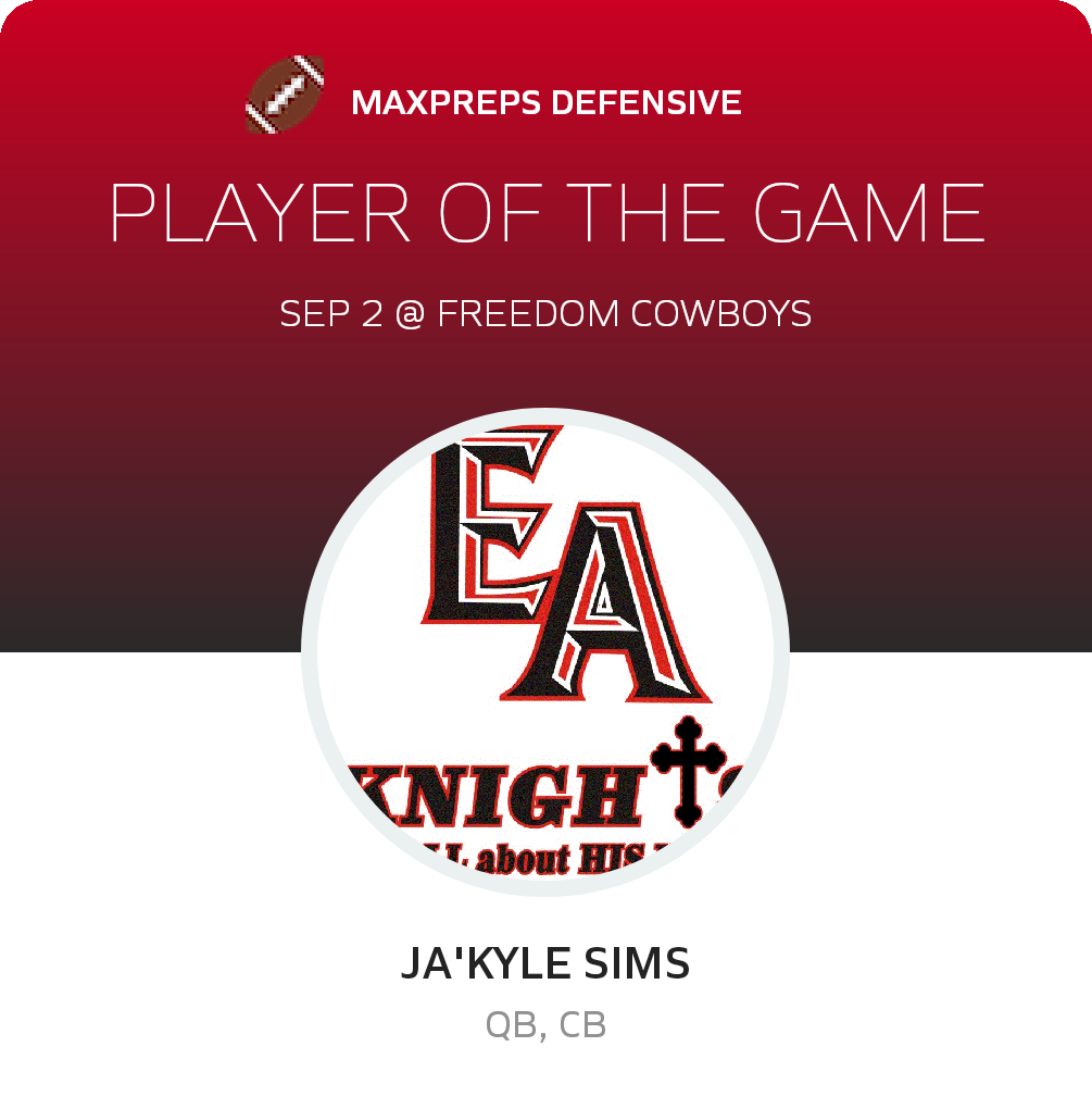 Congratulations to #1 Branden Davis (overall), #4 Ja'kyle Sims (defensive) and #42 Wesley Speer (special teams) for being selected the Ezekiel Academy Football Players of the Game.
