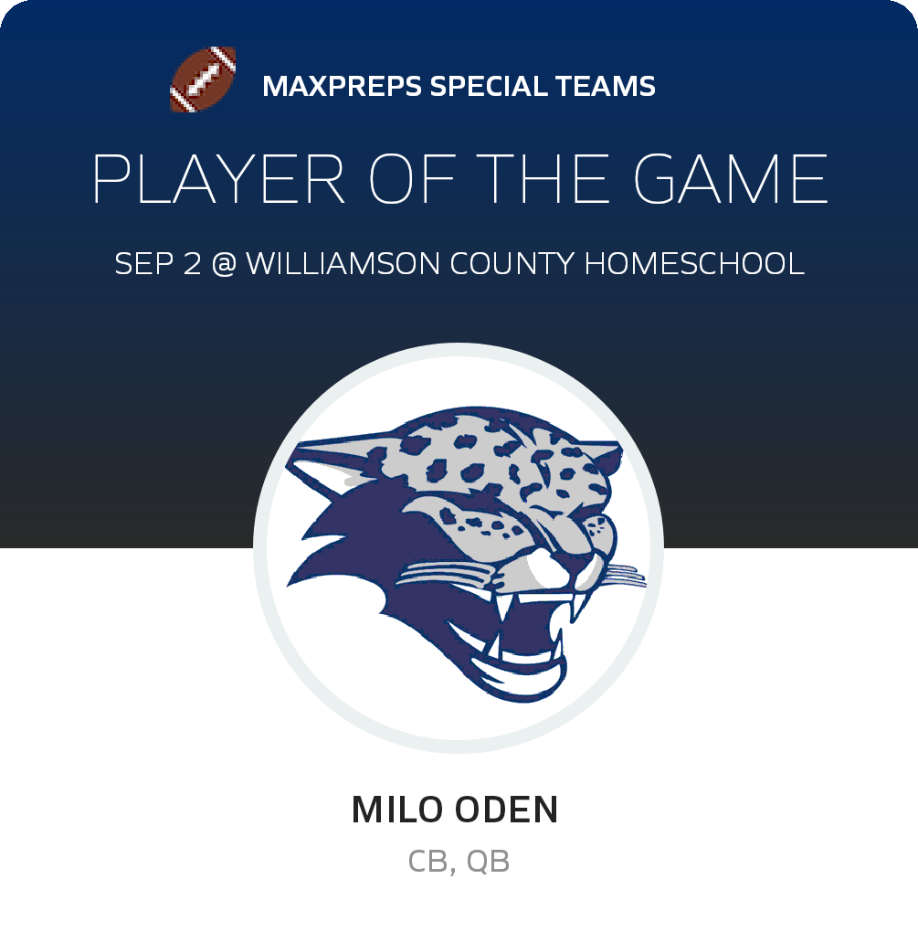 With the loss, Williamson County HomeSchool moves to 0-2 on the season. The travel to Texas Wind (Waco, TX) to confront the in a TAIAO Division 3 (6 Man) outing on Saturday, September 10. The go into the outing with a record of 1-0. Texas Wind won 49-39 in their recent non-league outing against Faustina Academy (Irving, TX)