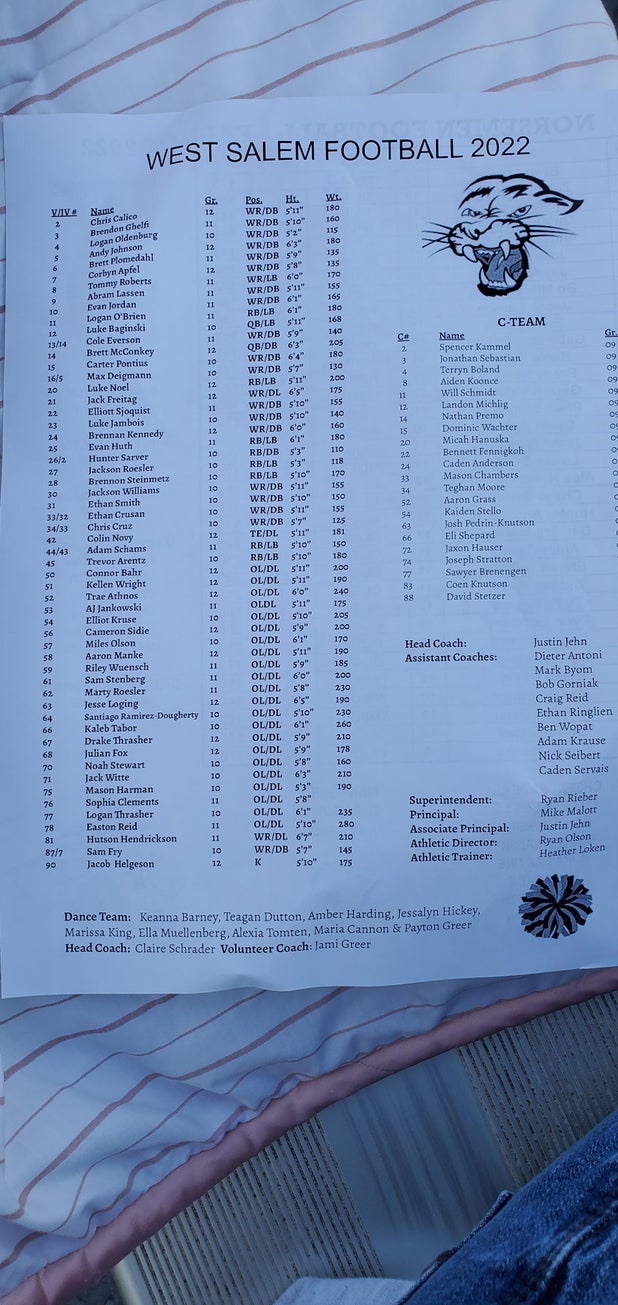 With the triumph, West Salem improves its record to 2-1 on the campaign. The Panthers travel to Arcadia (Arcadia, WI) to confront the Raiders in a Coulee test on Friday, September 9. The Raiders come into the test with a record of 2-1. Arcadia won 20-14 in their recent league test against Viroqua (Viroqua, WI)