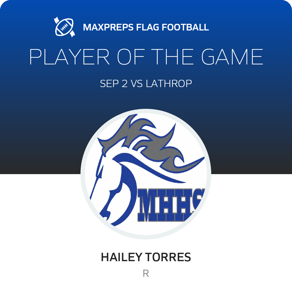 September 2, 2025: Mountain House, CA 95391 Lathrop Spartans (Lathrop, CA) followers went home pleased Tuesday as they saw their flag football team gain a win over the host Mountain House Mustangs (Mountain House, CA), 31-8 in a non-league battle.
