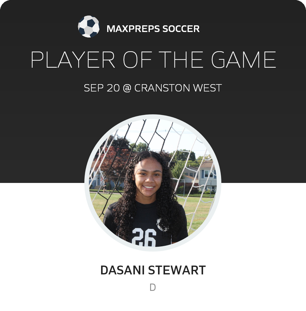 Congratulations to #26 Dasani Stewart for being selected the Pilgrim Girls Soccer Player of the Match.