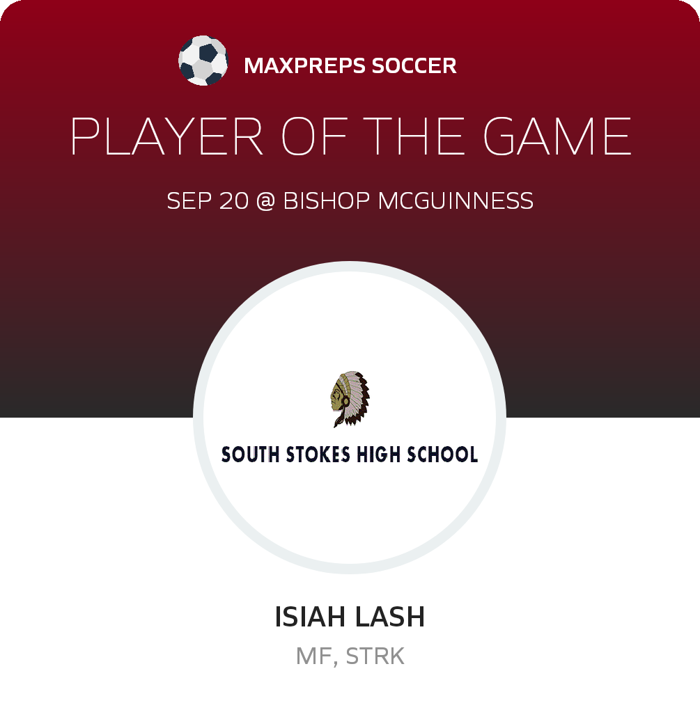 Congratulations to #24 Isiah Lash for being selected the South Stokes Soccer Player of the Match.