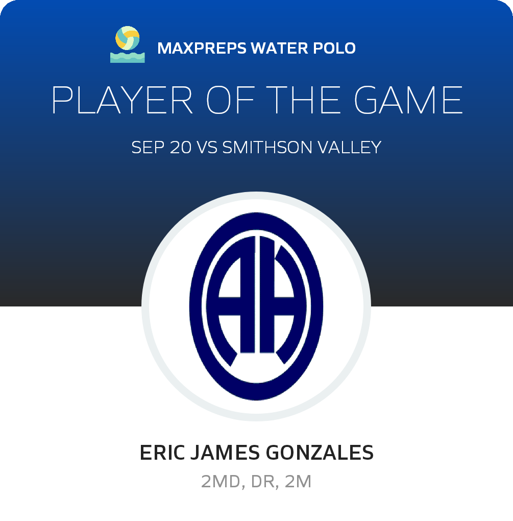 Congratulations to #5 Eric James "EJ" Gonzales for being selected the Alamo Heights Water Polo Player of the Game.