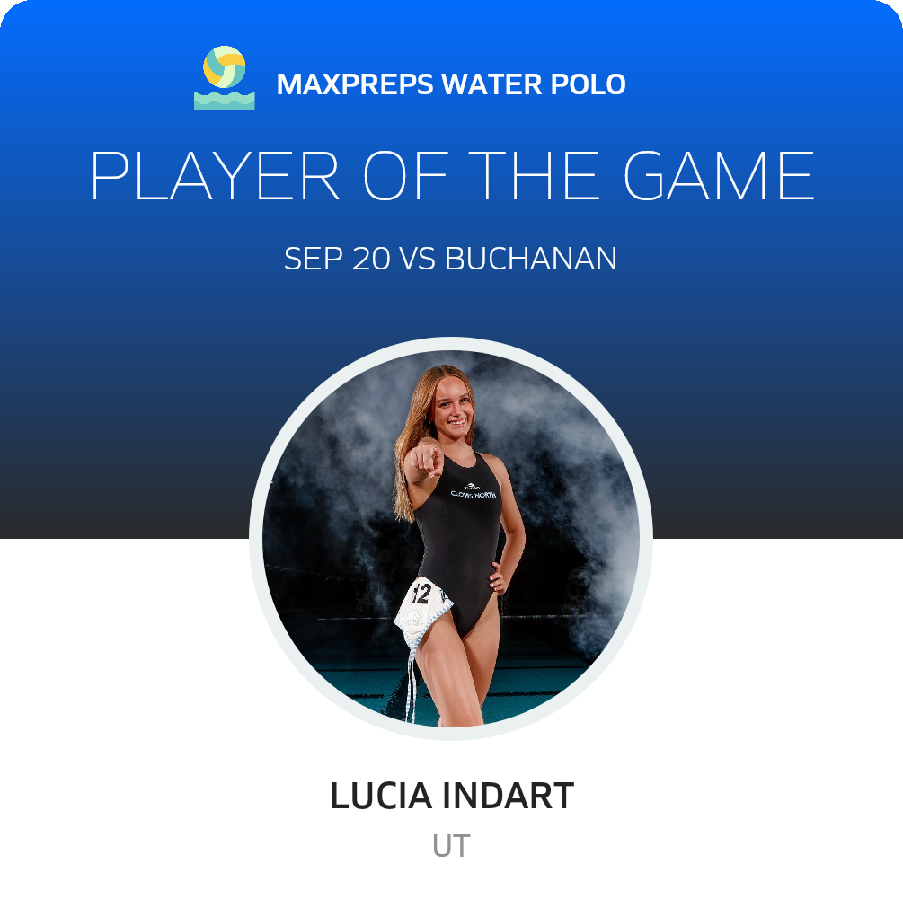 Congratulations to #12 Lucia Indart for being selected the Clovis North Girls Water Polo Player of the Game.