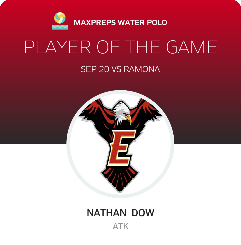 Congratulations to #4 Nathan Dow for being selected the Etiwanda Water Polo Player of the Game.