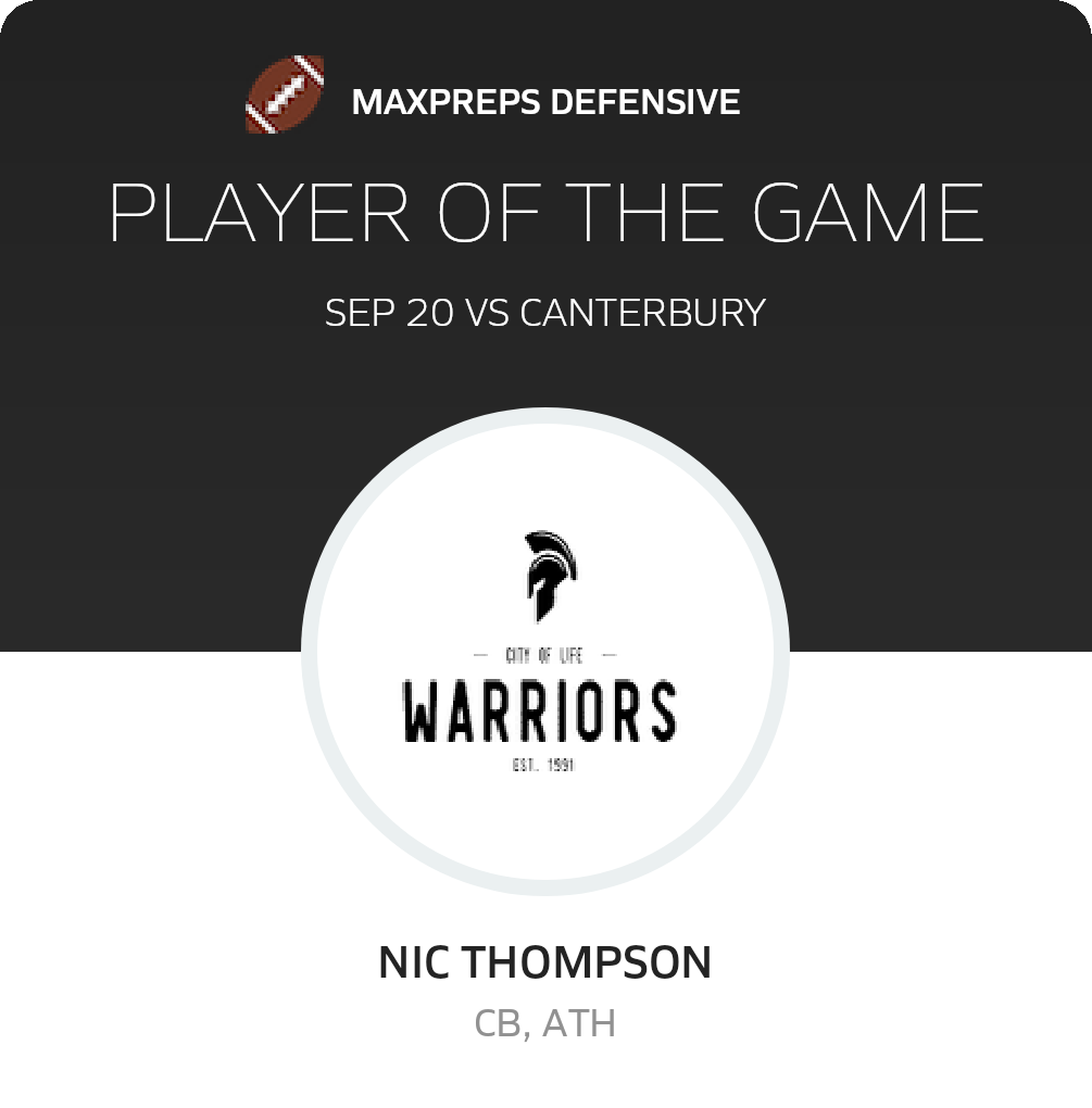 The Warriors now own a 0-5 record. They play next when they host Calvary Chapel Academy for a Sunshine State - Atlantic (8 Man) battle on Friday, September 27. City of Life Christian Academy will encounter a Eagles team coming off a 2-0 non-league loss to Ocala Christian (Ocala, FL). The Eagles record now stands at 2-4.