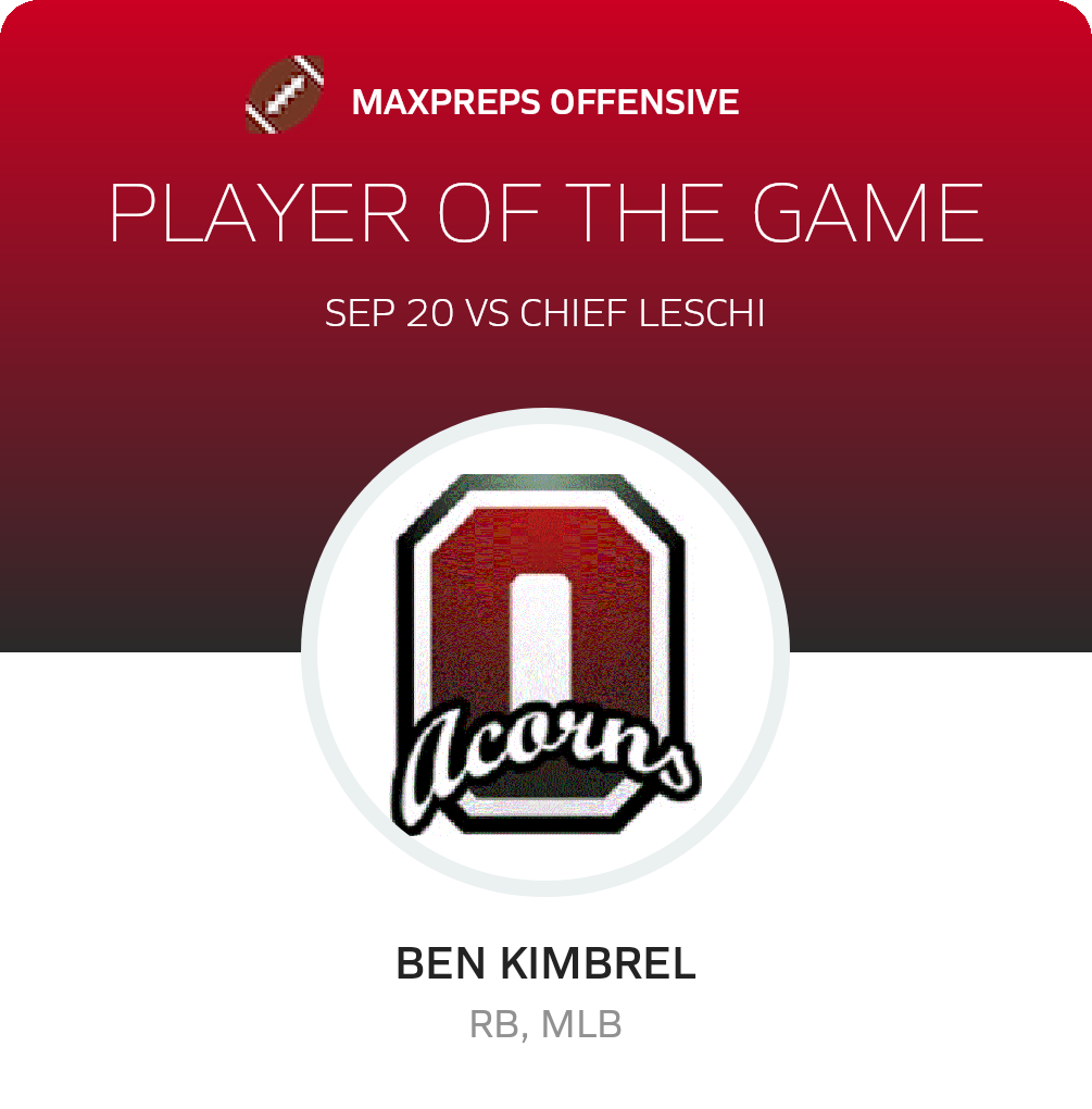 The Acorns now sport a 2-1 record. They take the field next when they travel to Wahkiakum for a 1B Southwest (8 Man) outing on Friday, September 27. Oakville will clash with a Mules squad coming off a 28-20 non-league loss to Ilwaco (Ilwaco, WA). The Mules record now stands at 0-3.