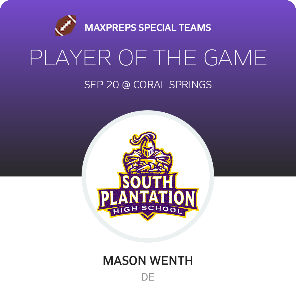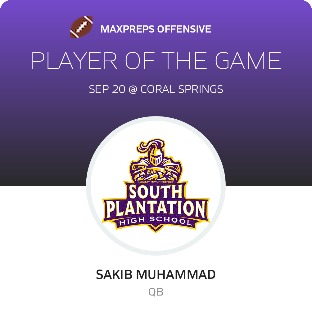 The Paladins now sport a 1-2 record. They take the field next when they host Northeast for a non-league test on Thursday, September 26. South Plantation will meet a Hurricanes squad coming off a 30-6 non-league loss to Hallandale (Hallandale, FL). The Hurricanes record now stands at 1-3.