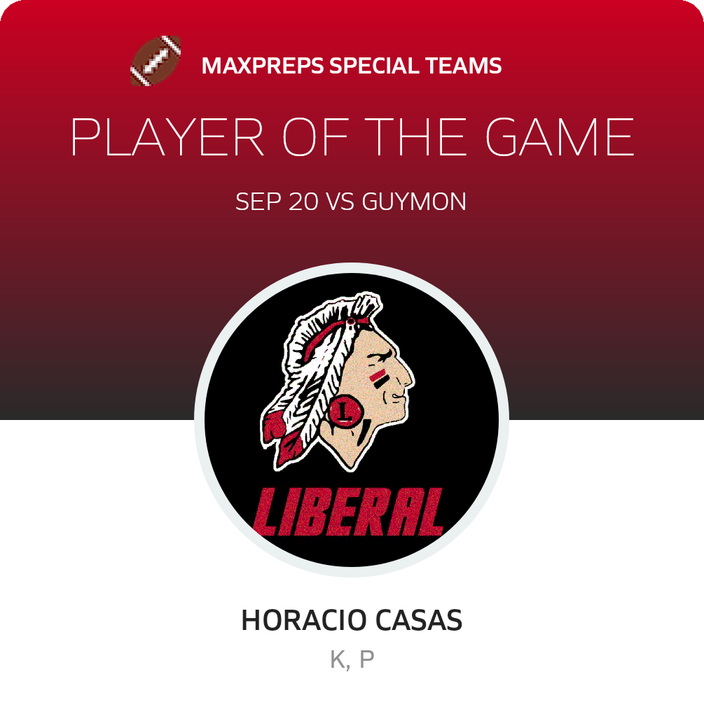 September 20, 2024: Liberal, KS 67901 In Friday's non-league game, the Liberal Redskins (Liberal, KS) football team triumphed over the visiting Guymon Tigers (Guymon, OK), by a tally of 56-0.