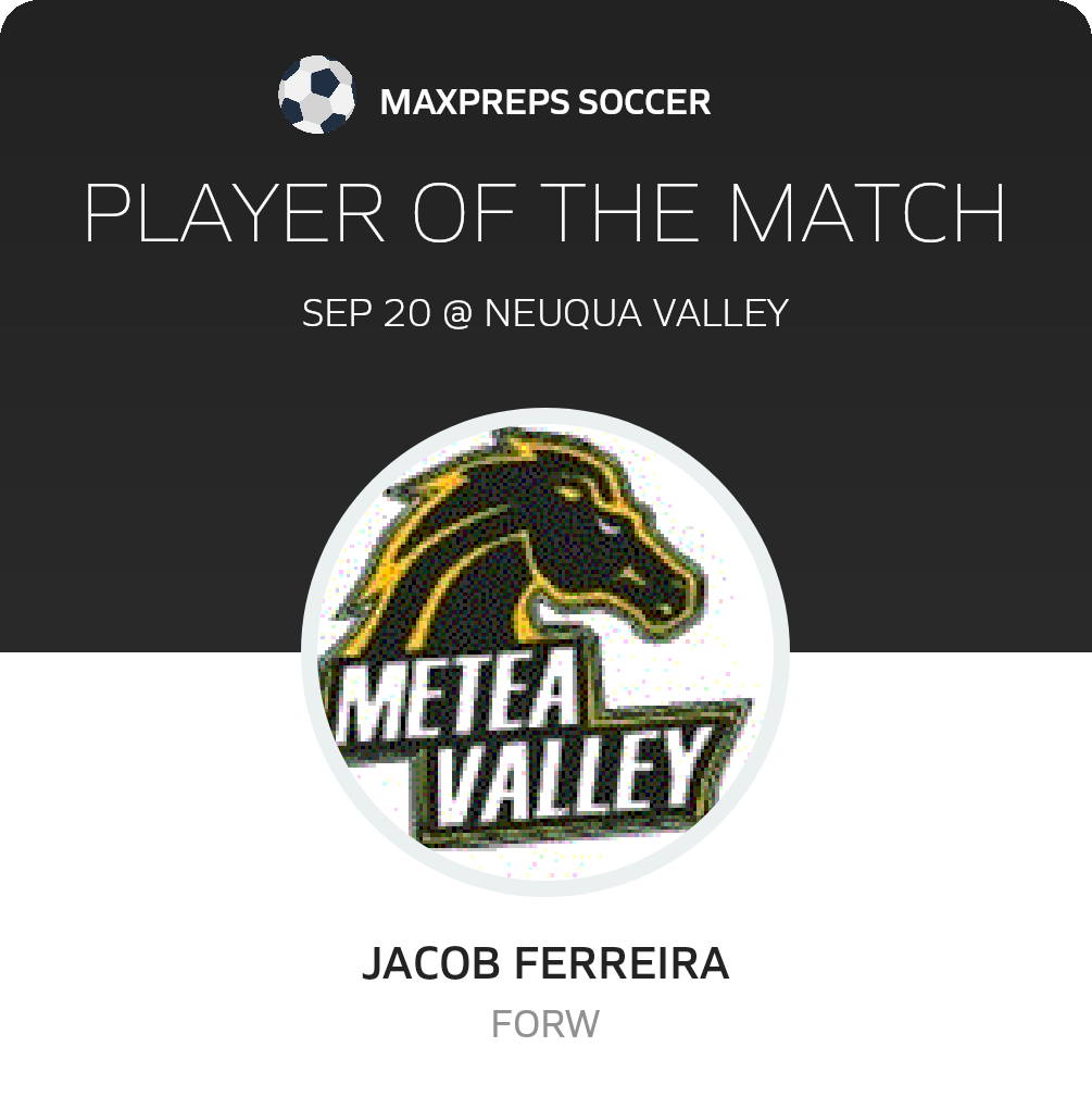 Congratulations to #22 Jacob Ferreira for being selected the Metea Valley Soccer Player of the Match.