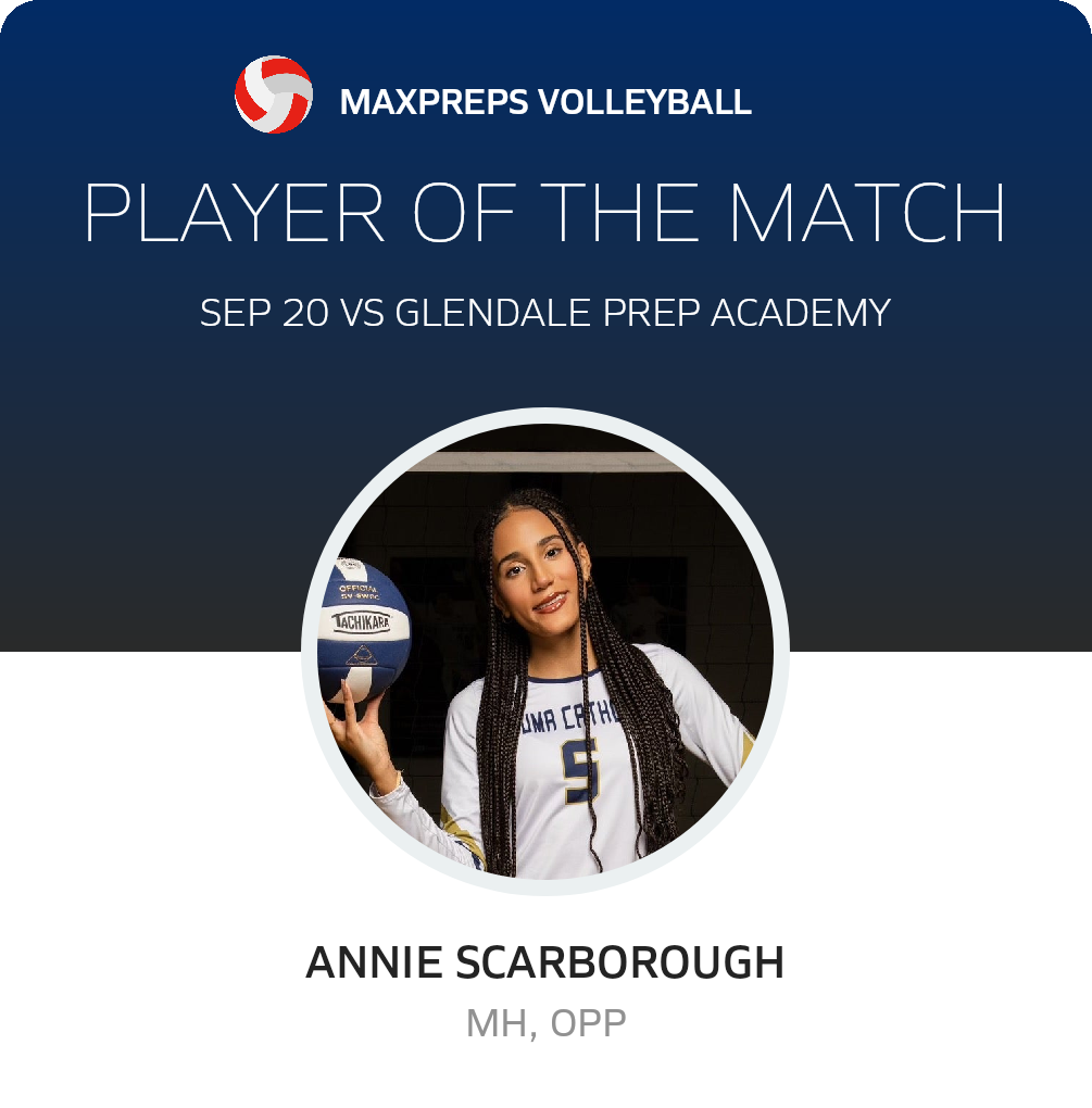 Congratulations to #5 Annie Scarborough for being selected the Yuma Catholic Volleyball Player of the Match.