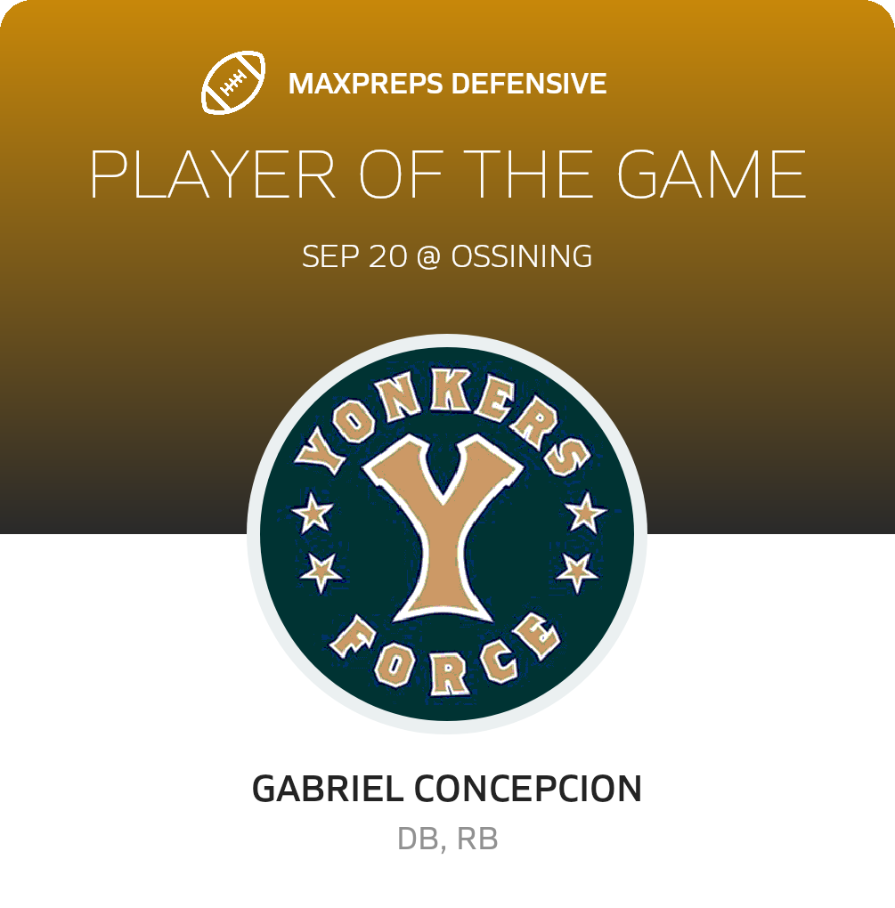 September 20, 2025: Ossining, NY 10562 The Ossining Pride football team (Ossining, NY), was crushed 43-7 in Saturday's league match with the visiting Yonkers Force [Gorton/Roosevelt/Yonkers Montessori Academy/Yonkers] Force (Yonkers, NY)