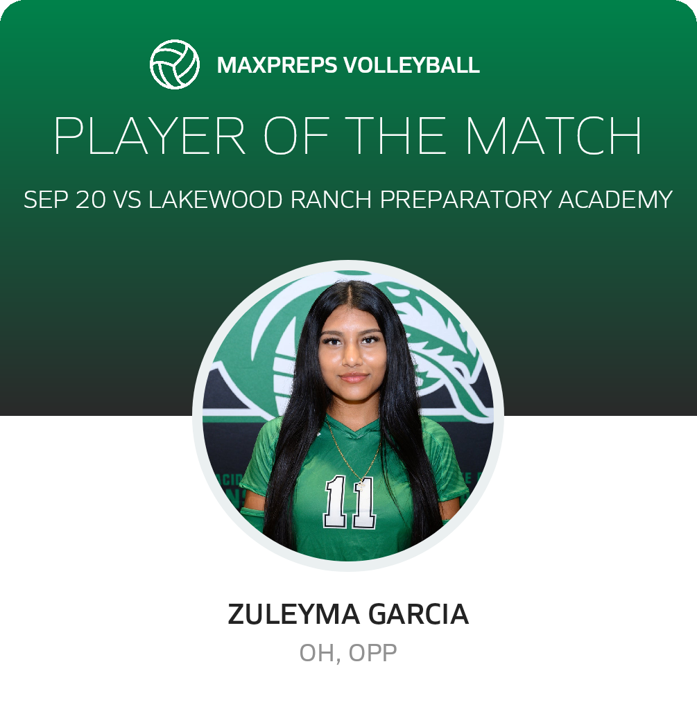 September 20, 2025: Lakewood Ranch, FL 34211 The Lake Placid Dragons volleyball team scored 2 points and restricted the host Lakewood Ranch Preparatory Academy Eagles to 1 in the Dragons non-league victory on Saturday.