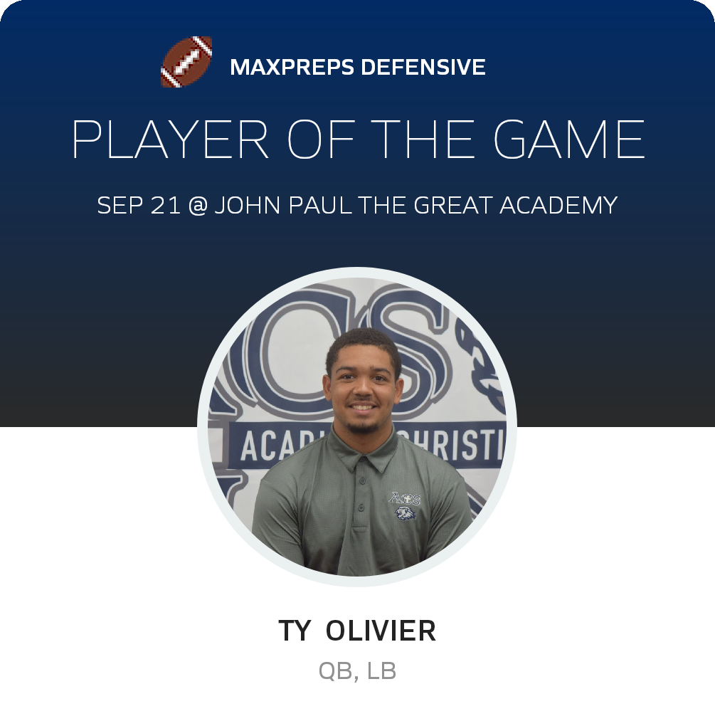 The John Paul the Great Academy (Lafayette, LA) varsity football team won Saturday's away conference game against Acadiana Christian (New Iberia, LA) by a score of 40-8.