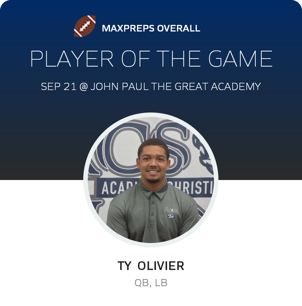 Congratulations to #4/21 Ty Olivier (overall and defensive) and #0 Ridge Darden (offensive) for being selected the Acadiana Christian Football Players of the Game.