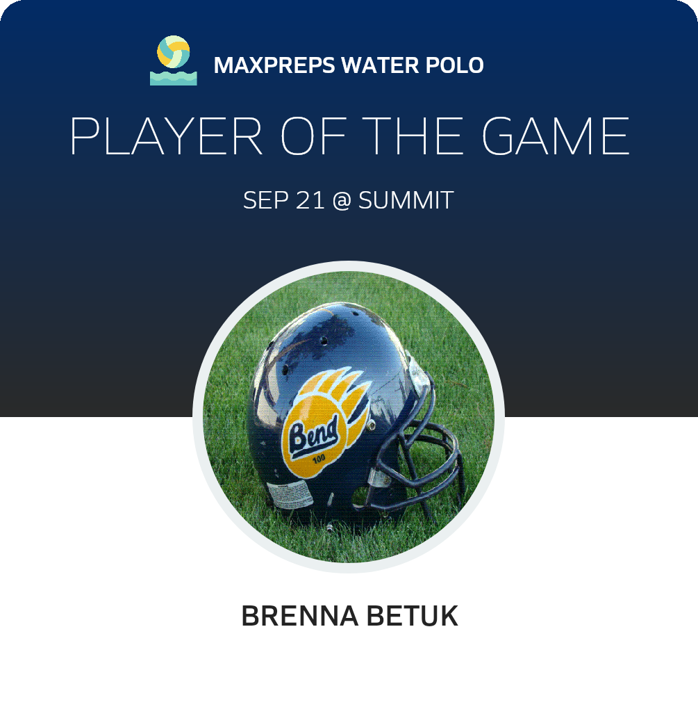 Congratulations to #2 Brenna Betuk for being selected the Bend Girls Water Polo Player of the Game.