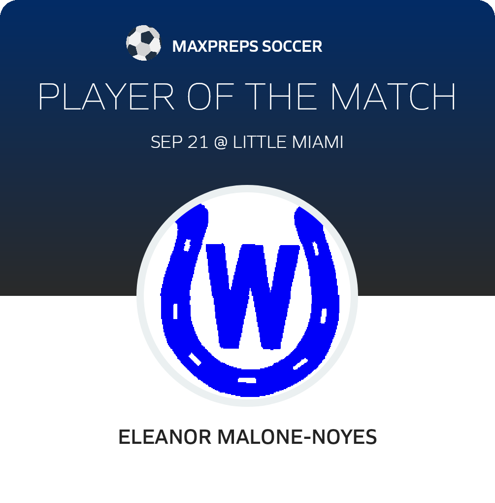 Congratulations to #8 Eleanor Malone-Noyes for being selected the Wyoming Girls Soccer Player of the Match.