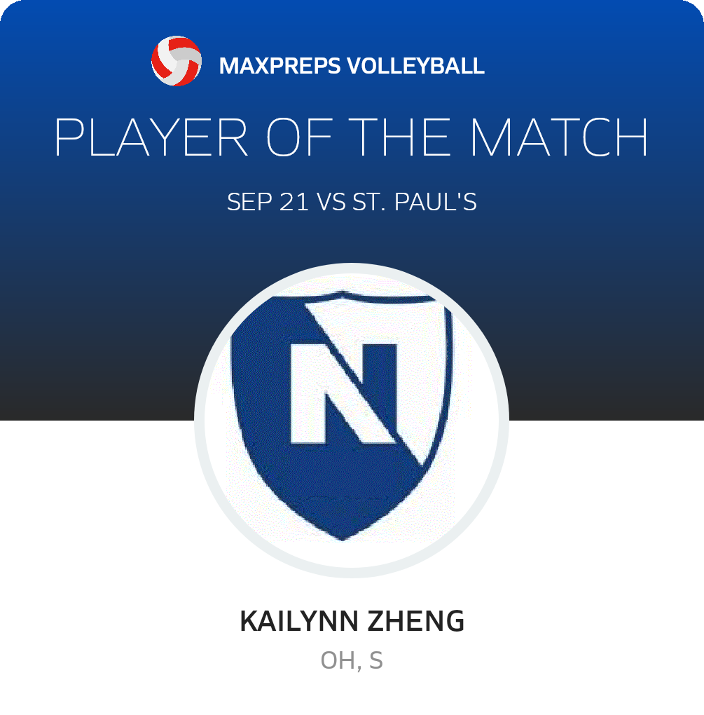 Congratulations to #1 Kailynn Zheng for being selected the Noble & Greenough Volleyball Player of the Match.