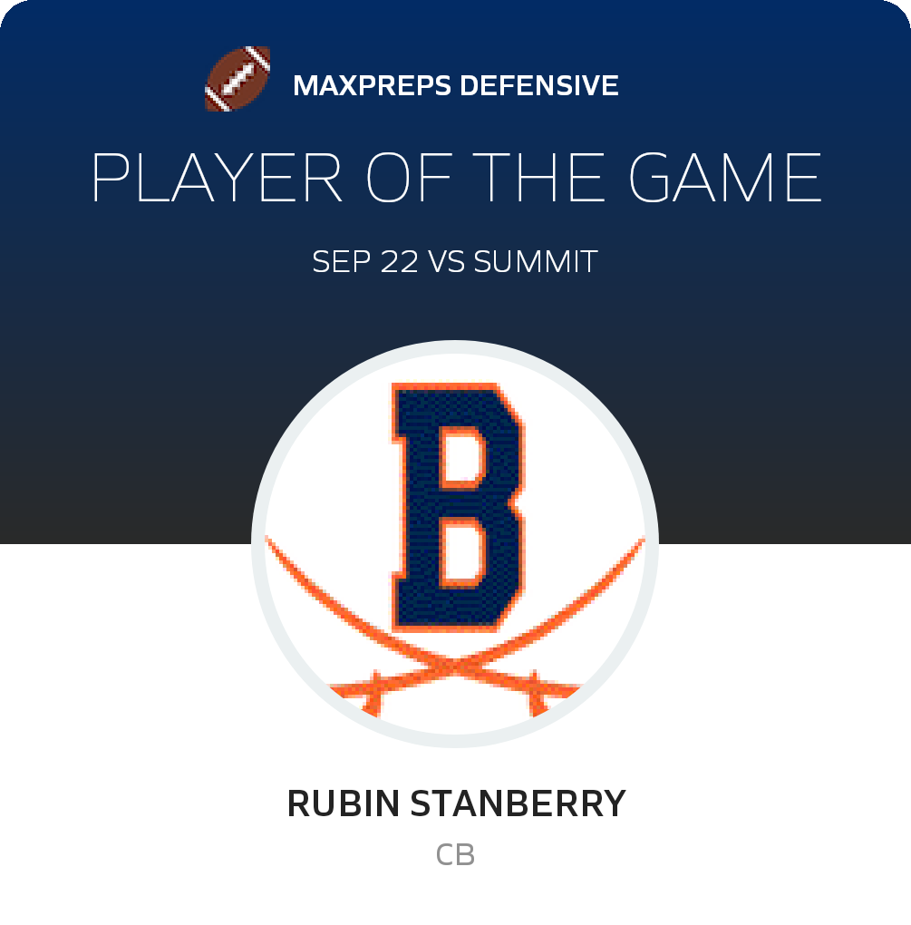 Congratulations to #70 Maddox Sorenson (overall), #26 Darius Johnson (offensive), #1 Rubin Stanberry (defensive) and #7 Jp Courtney (special teams) for being selected the Beech Football Players of the Game.