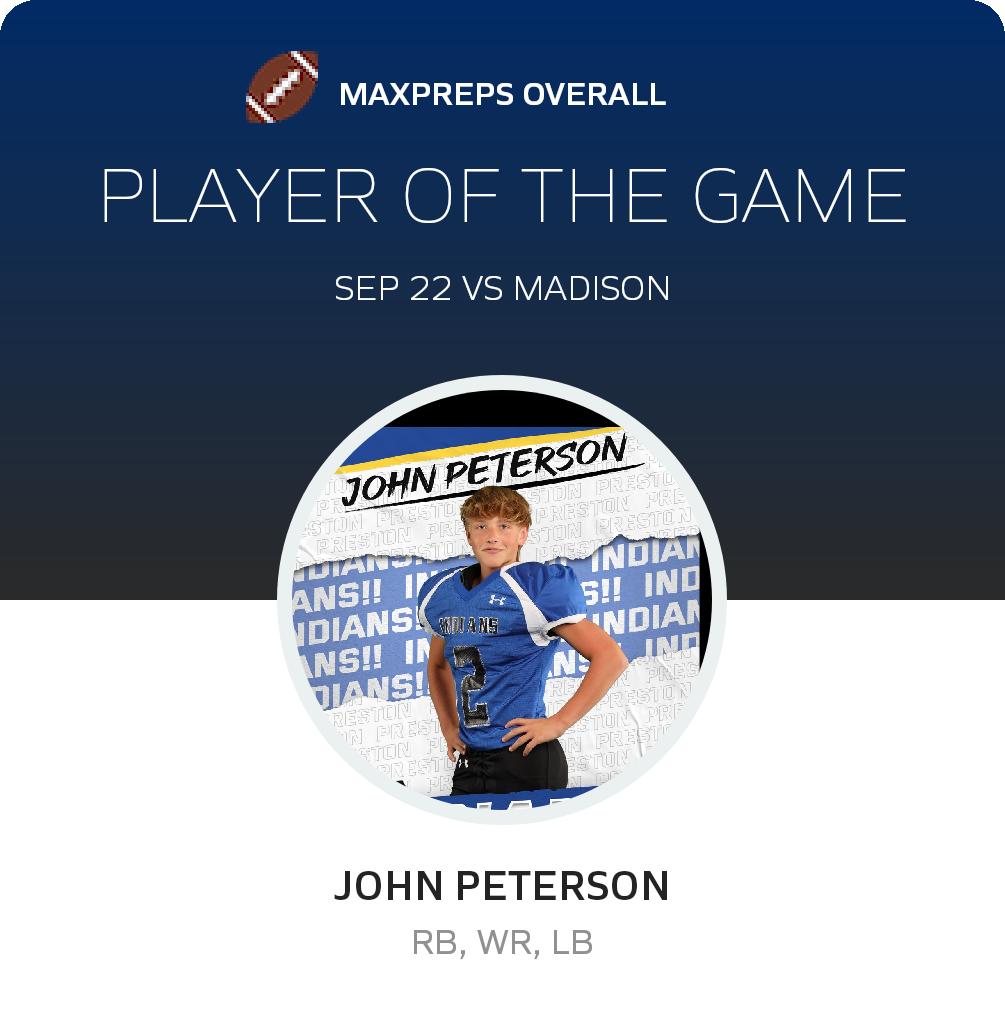 September 22, 2022: Preston, ID 83263 In Thursday's non-league game, the Madison Bobcats (Rexburg, ID) football team were victorious over the host Preston Indians (Preston, ID), by a score of 42-12.