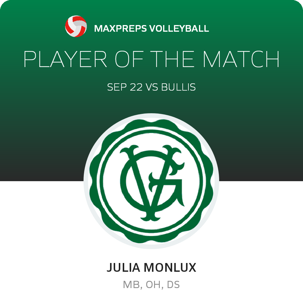 Congratulations to #5 Julia Monlux for being selected the Georgetown Visitation Prep Volleyball Player of the Match.
