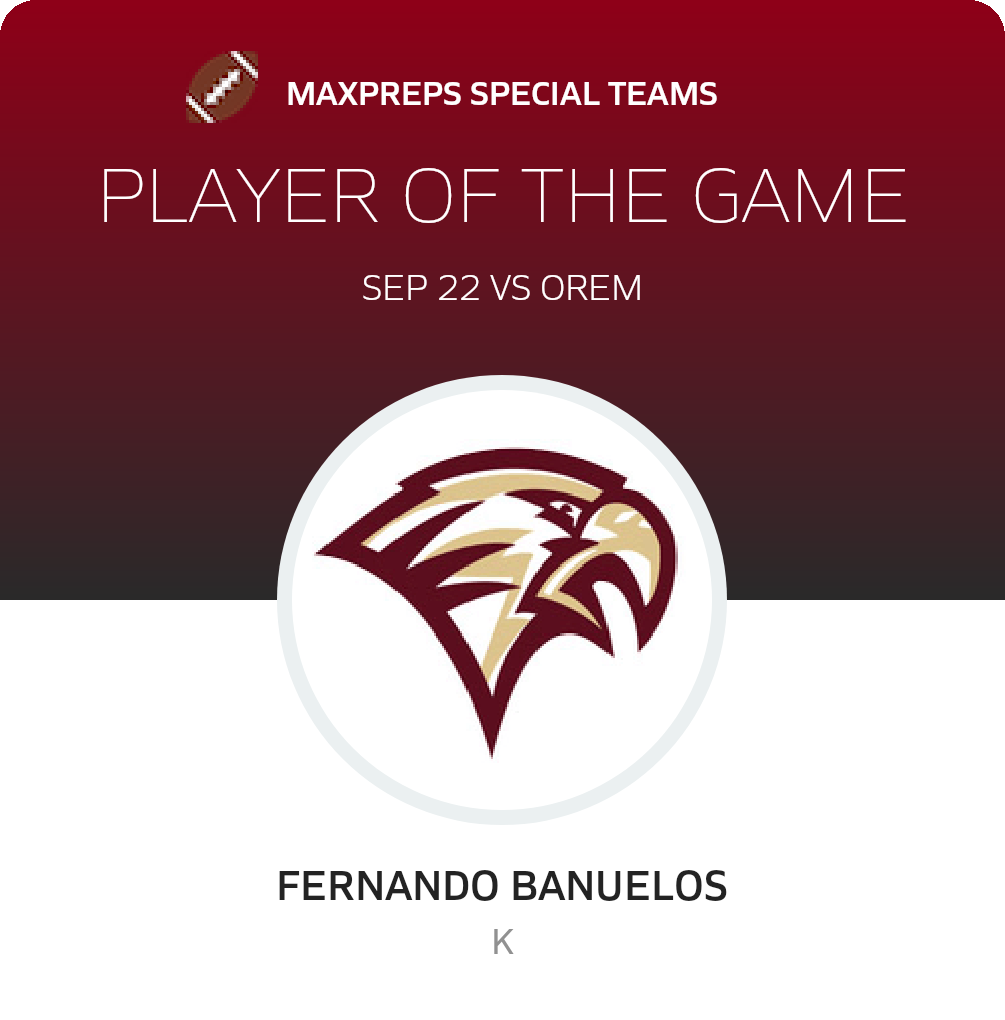 Coming up next, the Tigers play the Cedar Valley Aviators (Eagle Mountain, UT) in a 5A Region 7 battle, on Friday, September 29. Orem will attempt to advance on its 2-5 season record. The Aviators enter the battle with a 2-5 record after their 48-10 league loss to Timpview (Provo, UT).