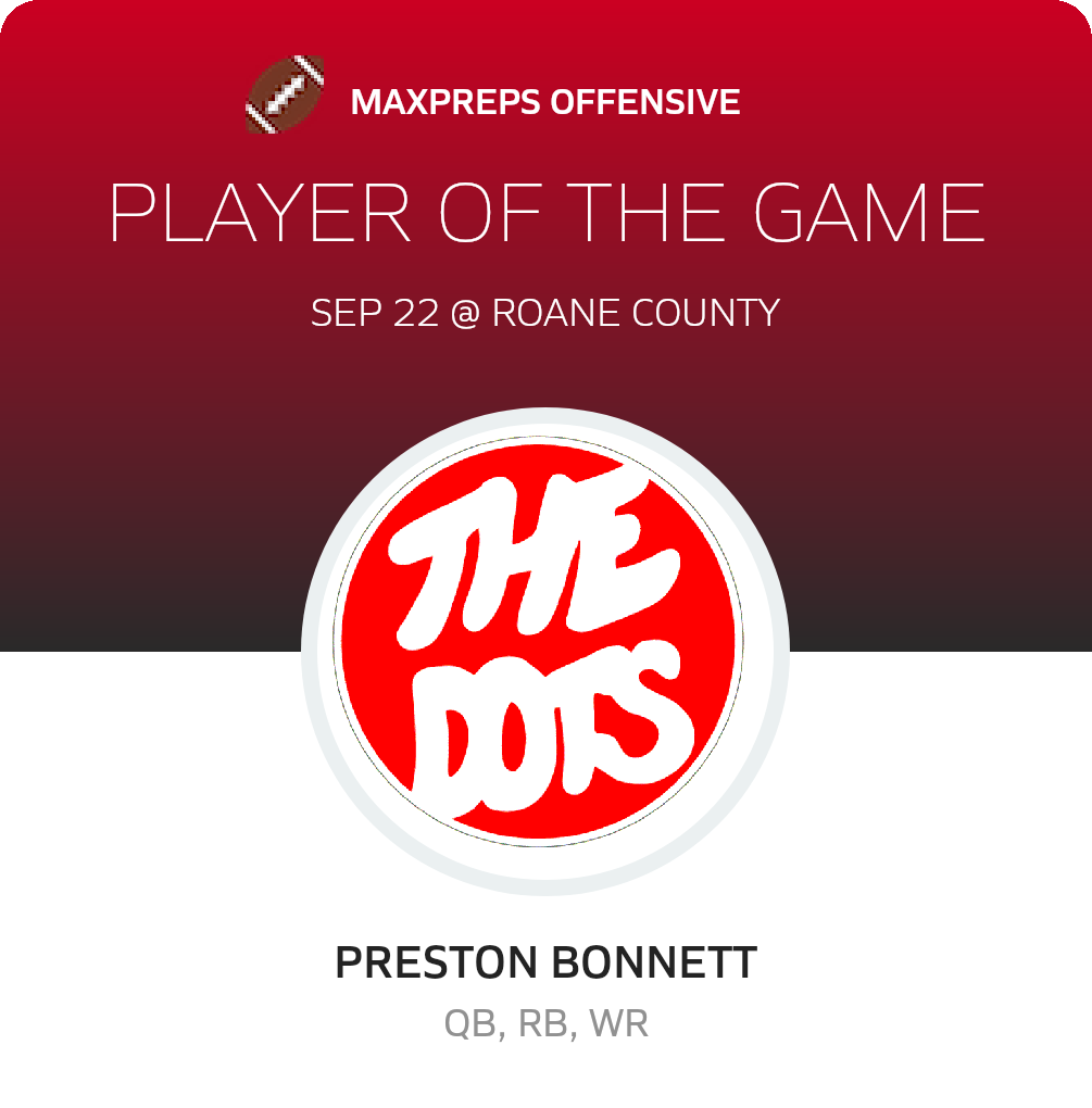 The The Dots now sport a 2-3 record. They take the field next when they host Sissonville for a Cardinal challenge on Friday, September 29. Poca will meet a Indians team coming off a 49-7 league loss to Hoover (Clendenin, WV). The Indians record now stands at 0-5.