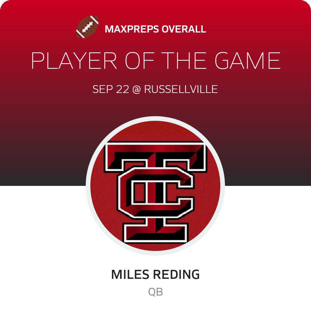 TCC 20 RHS 7: Miles Reding 5-yd TD run, Grady Reding PAT good, 6:52 left