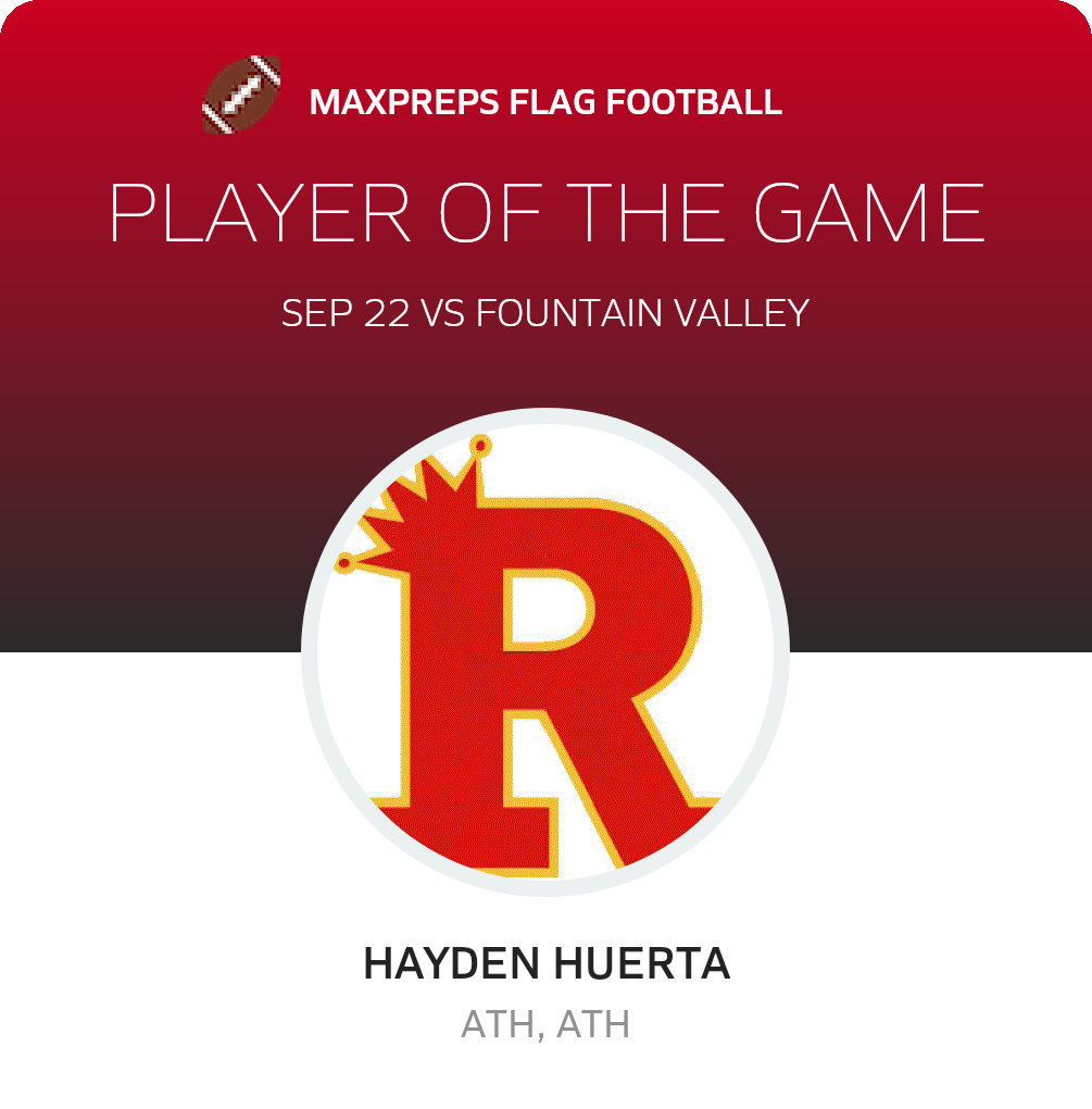 The Rosary Academy (Fullerton, CA) varsity flag football team won Friday's neutral tournament game against Fountain Valley (CA) by a score of 40-19.
