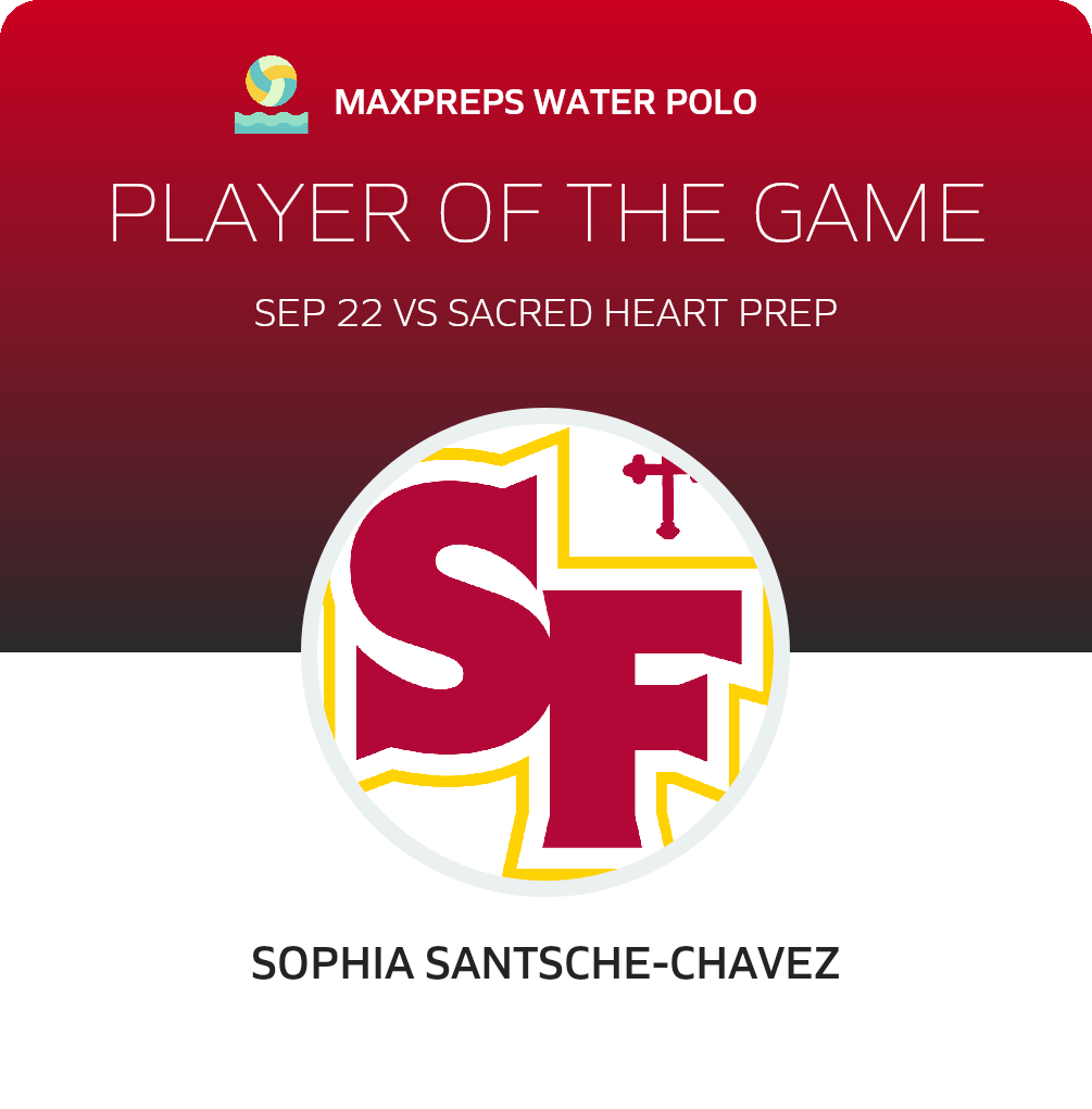 Congratulations to #1 Sophia Santsche-Chavez for being selected the St. Francis Girls Water Polo Player of the Game.