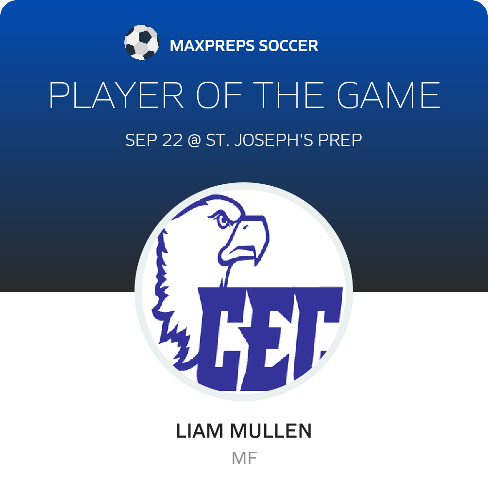 Congratulations to #10 Liam Mullen for being selected the Conwell-Egan Catholic Soccer Player of the Match.