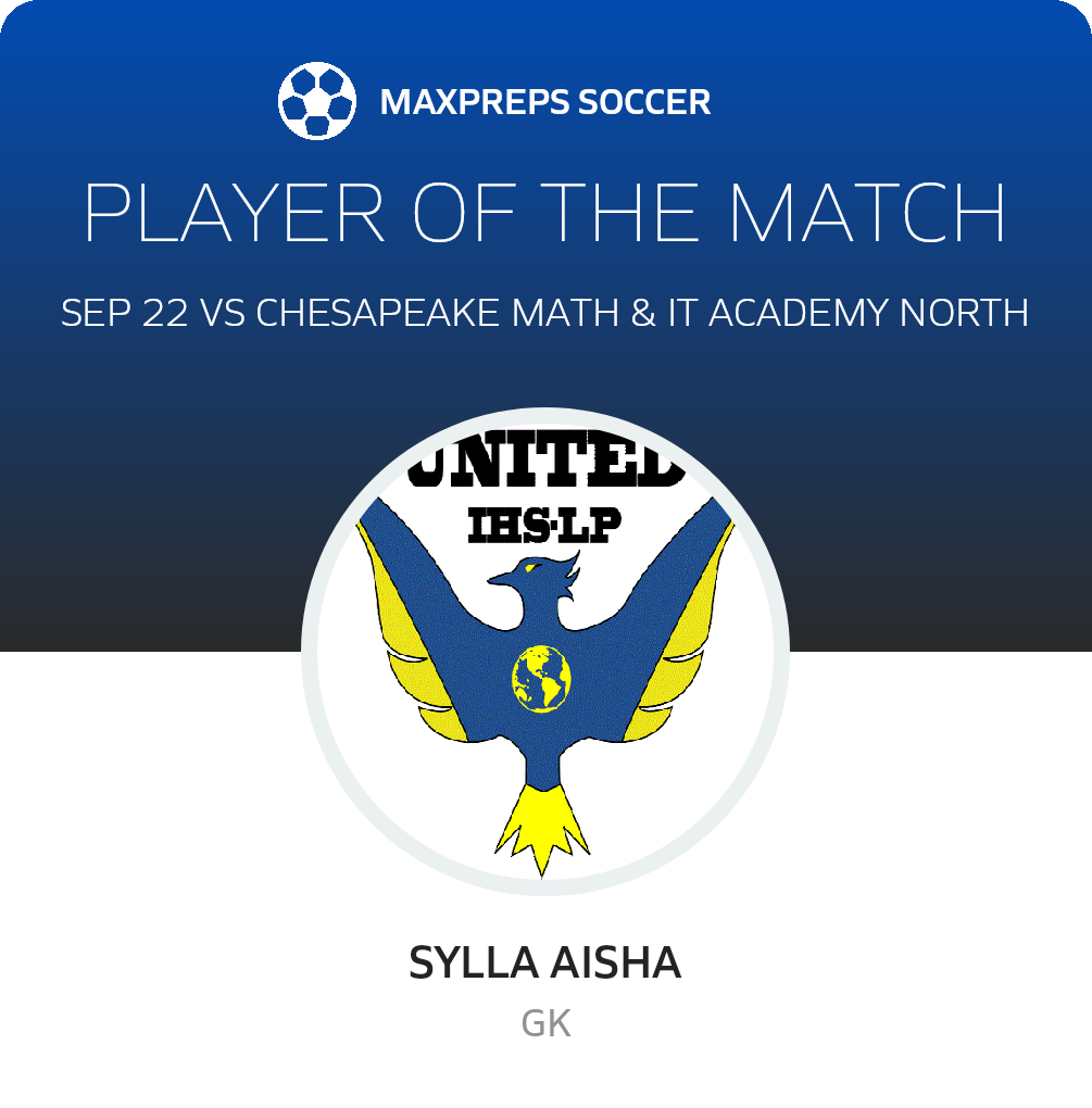 Congratulations to #19 Sylla Aisha for being selected the International High School at Langley Park Girls Soccer Player of the Match.