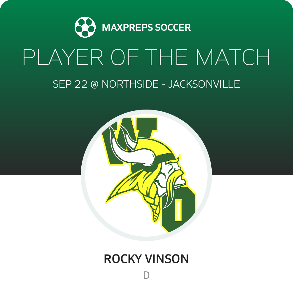 Congratulations to #9 Rocky Vinson for being selected the White Oak Soccer Player of the Match.