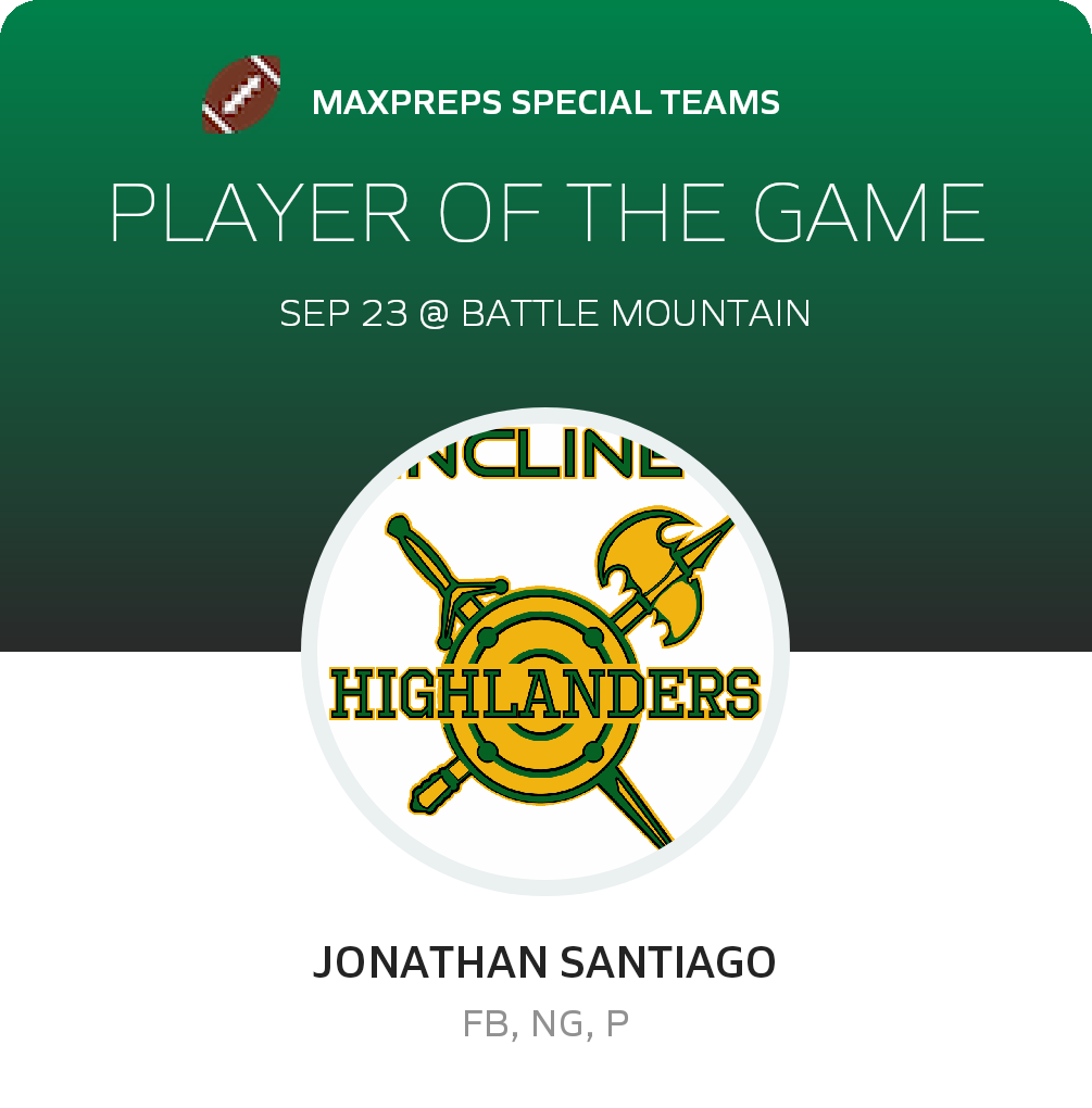 Coming up next, the Highlanders face the Coral Academy of Science - Reno Falcons (Reno, NV) in a 2A Northern battle, on Friday, September 30. Incline will attempt to advance on its 1-4 season record. The Falcons enter the battle with a 1-2 record after their 42-12 league win over Silver Stage (Silver Springs, NV).