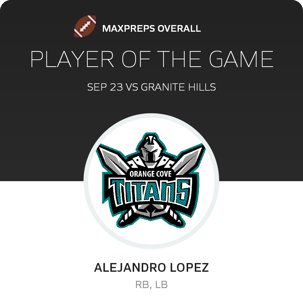 With the win, Orange Cove improves its record to 2-3 on the season.  The Titans travel to Woodlake (Woodlake, CA) to confront the Tigers in a East Sequoia test on Friday, September 30.  The Tigers go into the test with a record of 3-2.  Woodlake lost 31-22 in their recent league test against Corcoran (Corcoran, CA)