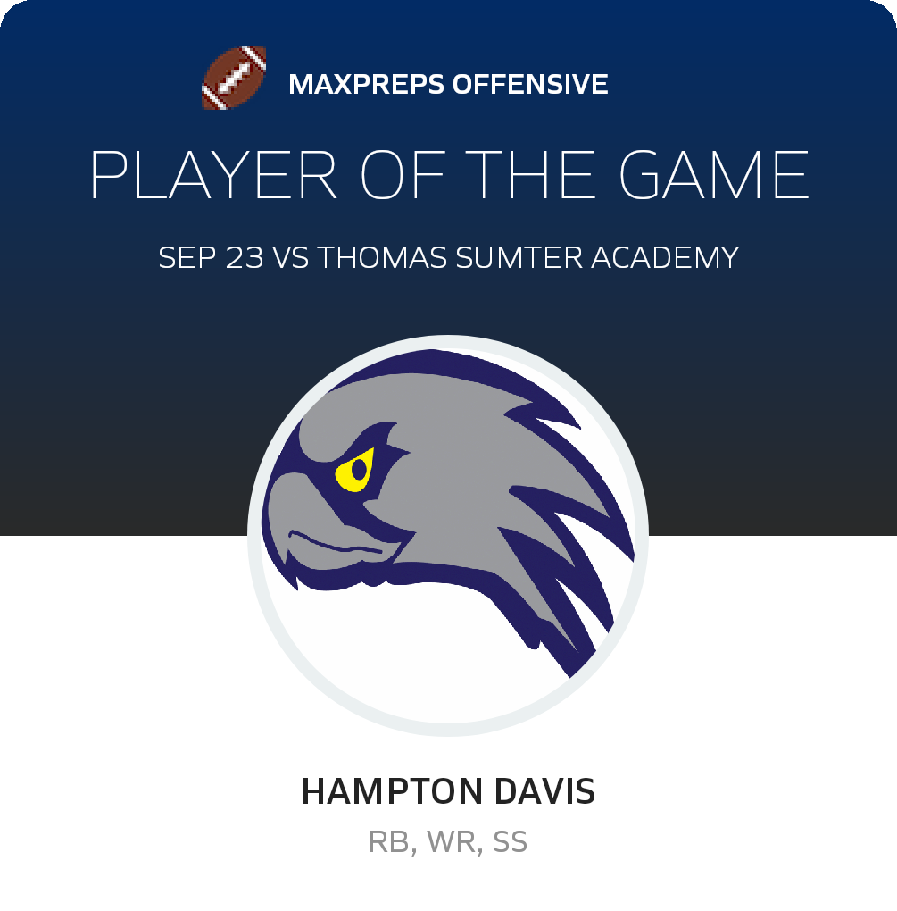 Coming up next, the Hawks play the Colleton Prep Academy War Hawks (Walterboro, SC) in a non-league contest, on Friday, September 30. Greenwood Christian will attempt to upgrade on its 1-5 season record. The War Hawks go into the contest with a 6-0 record after their 48-14 non-league win over Spartanburg Christian Academy (Spartanburg, SC).