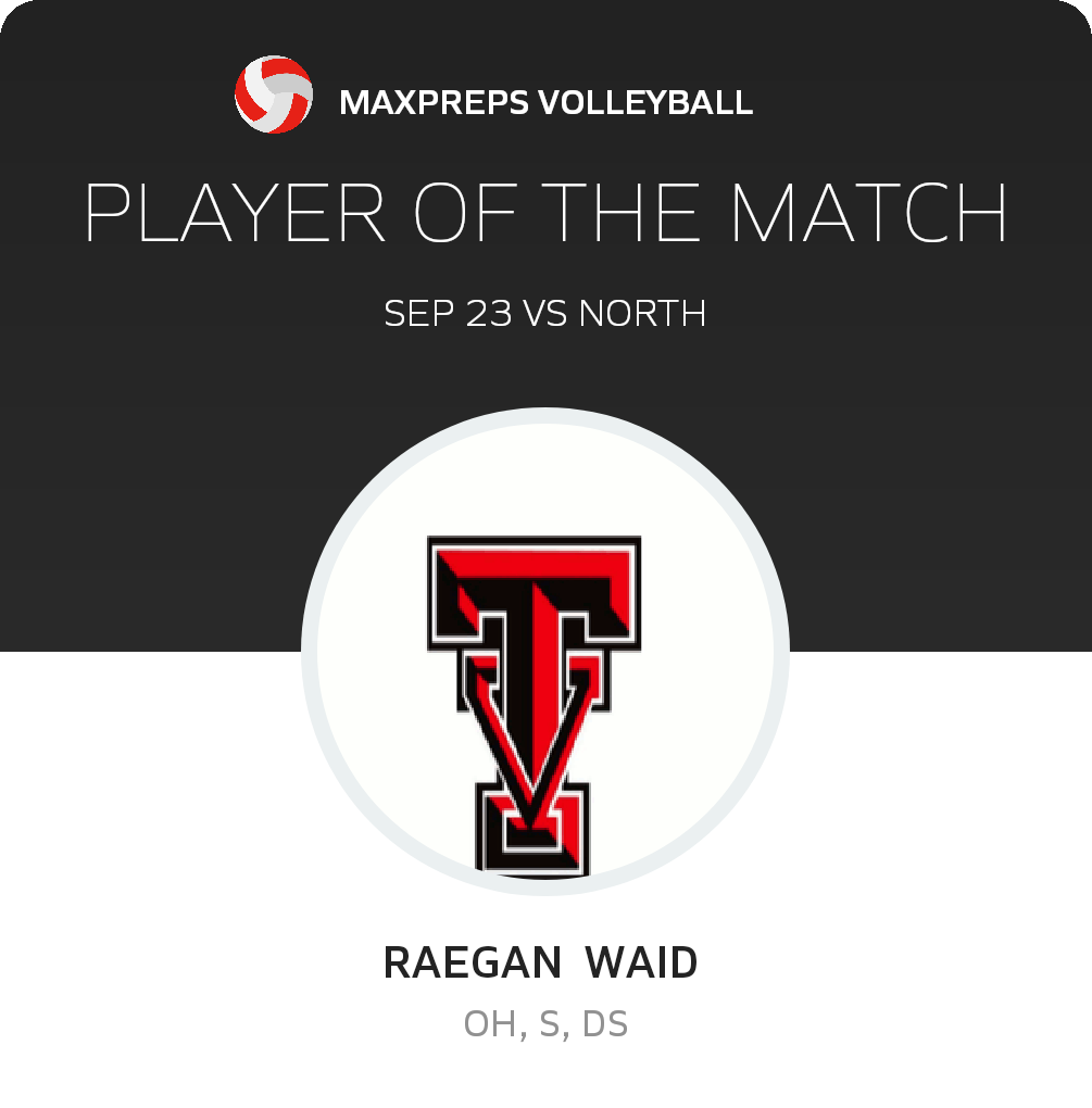 Congratulations to #23 Raegan Waid for being selected the Tonopah Valley Volleyball Player of the Match.