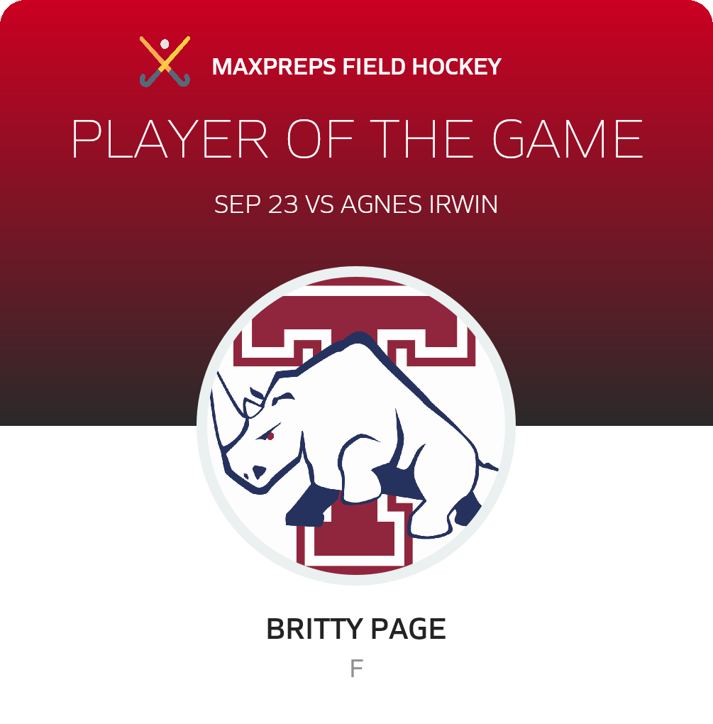 Congratulations to #2 Britty Page for being selected the Taft School Field Hockey Player of the Game.