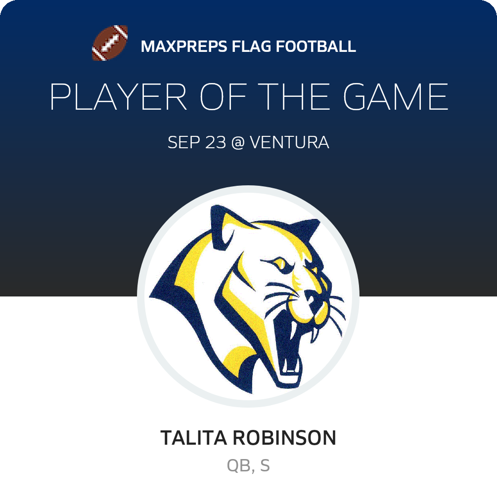 Congratulations to #11 Talita Robinson for being selected the Crenshaw Girls Flag Football Player of the Game.