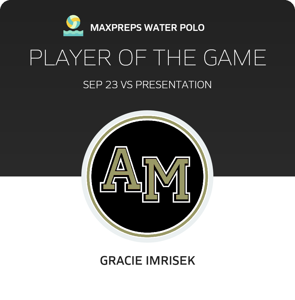 Congratulations to #11 Gracie Imrisek for being selected the Archbishop Mitty Girls Water Polo Player of the Game.